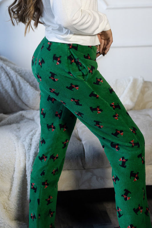 Women's Pajamas Santa Dog Green